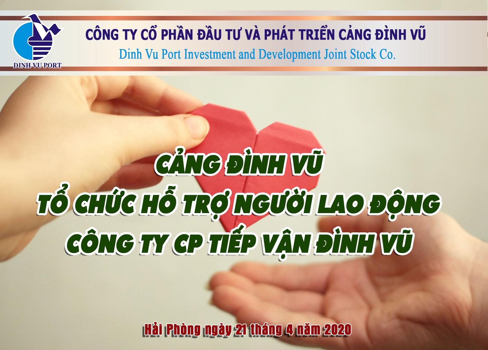 Trong 2 ngày 21&23 tháng 4 đã tổ chức trao tặng quà cho 19 lượt người lao động trong danh sách, tổng số tiền đã hỗ trợ là 95.000.000 đồng. Đây là nghĩa cử đẹp và thấu tình đạt lý của Cảng Đình Vũ trong giai đoạn thành phố và cả nước gặp nhiều khó khăn do ảnh hưởng của dịch Covid-19. Người lao động của Công ty Cổ phần Tiếp vận Đình Vũ khi nhận hỗ trợ cũng đã có lời cảm ơn sâu sắc tới Ban lãnh đạo và tập thể CBCNV Cảng Đình Vũ.