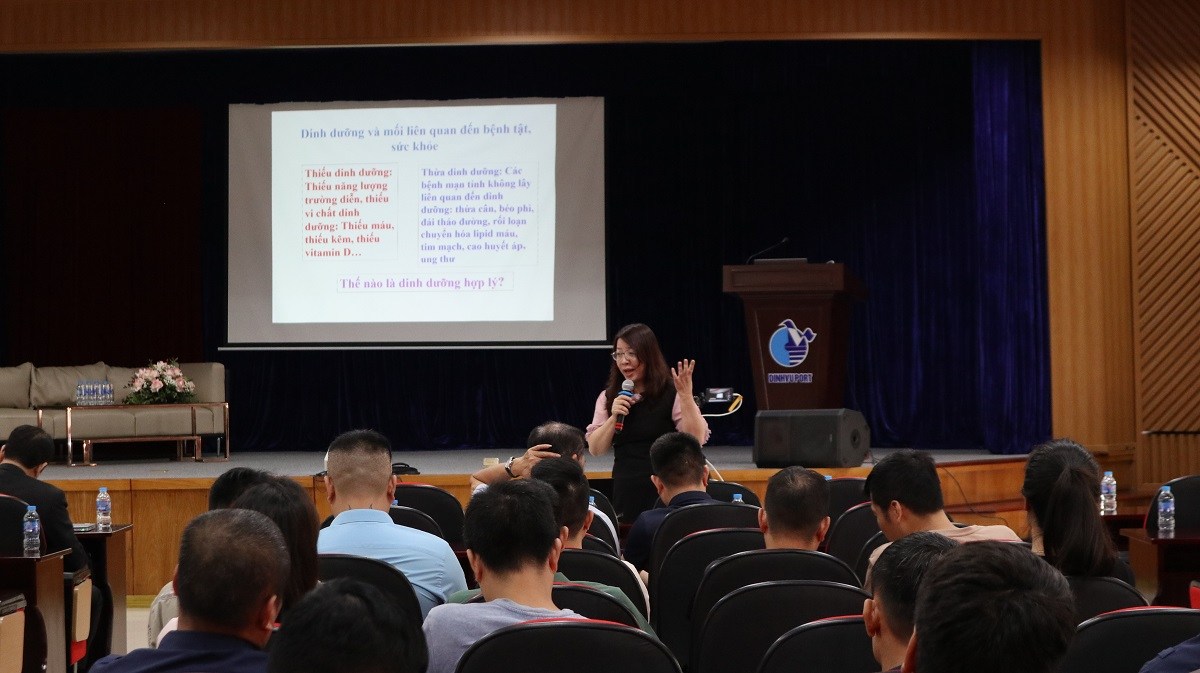Chương trình phổ biến kiến thức chăm sóc sức khỏe cho CBCNV Cảng Đình Vũ lần đầu tiên được tổ chức với hình thức đổi mới cùng sự tham gia tư vấn của các chuyên gia có kinh nghiệm là một hoạt động vô cùng thiết thực và bổ ích cho toàn thể Công ty. Thông qua chương trình, Ban lãnh đạo Công ty mong muốn mỗi người lao động sẽ nâng cao ý thức rèn luyện thể lực và lựa chọn chế độ dinh dưỡng phù hợp cùng lối sống lành mạnh để luôn đảm bảo sức khỏe thể chất và tinh thần.