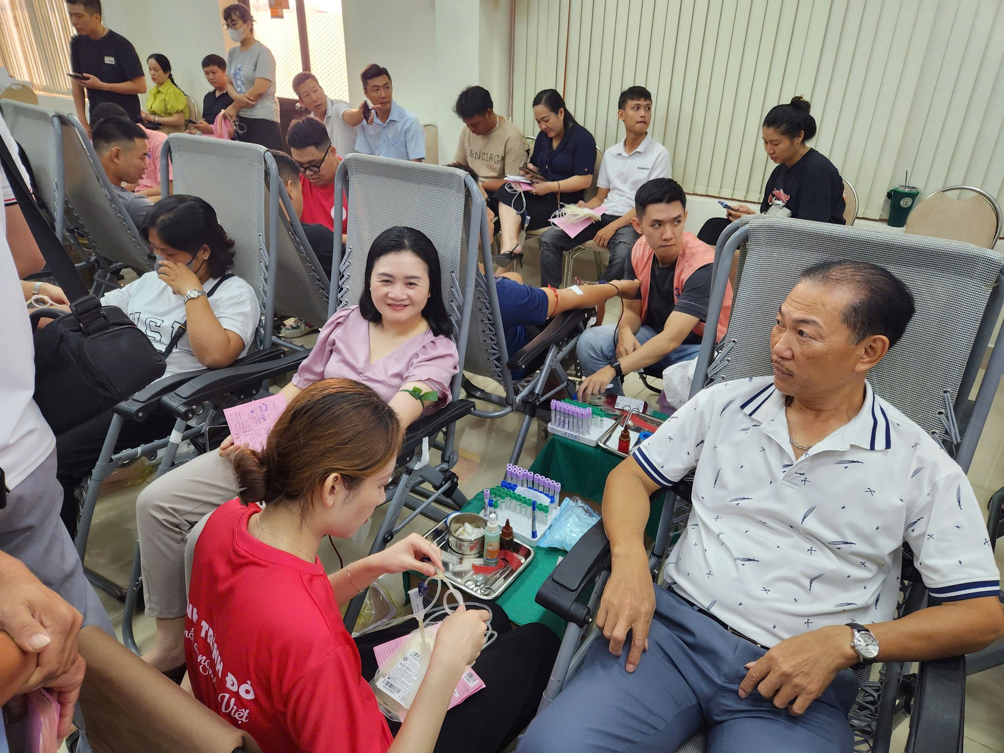 Người tham gia hiến máu được kiểm tra và tư vấn về sức khỏe trước khi lấy máu