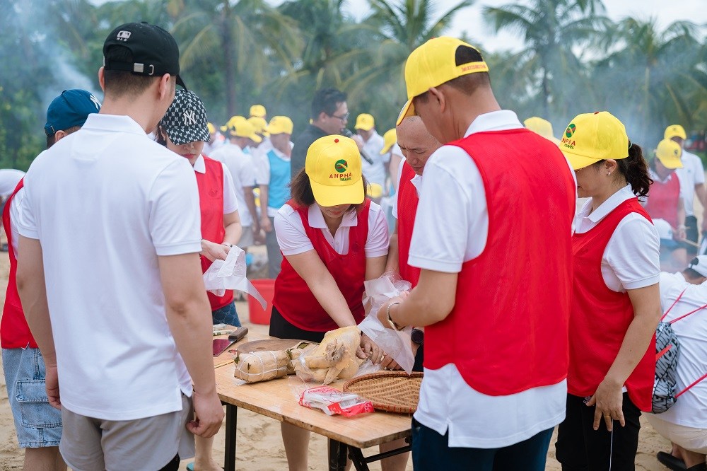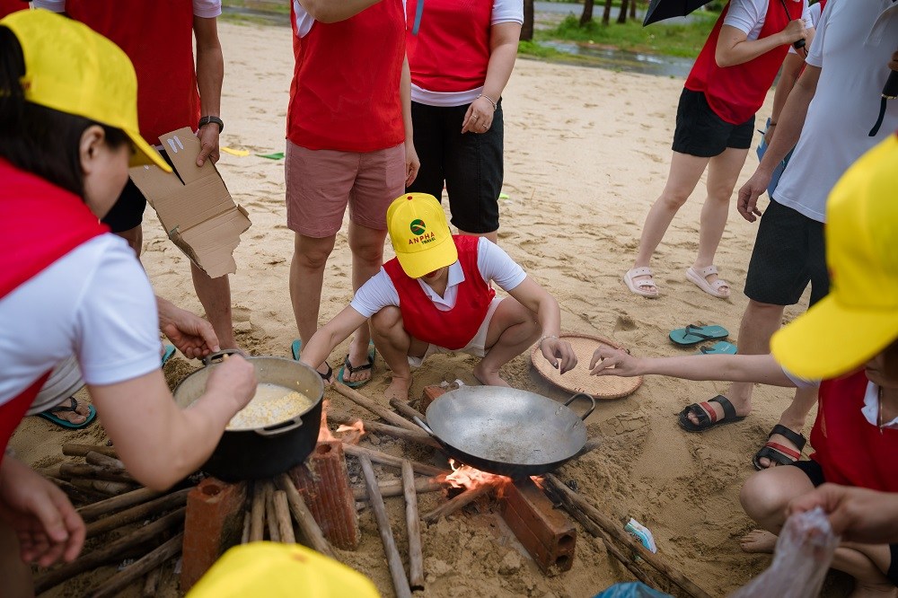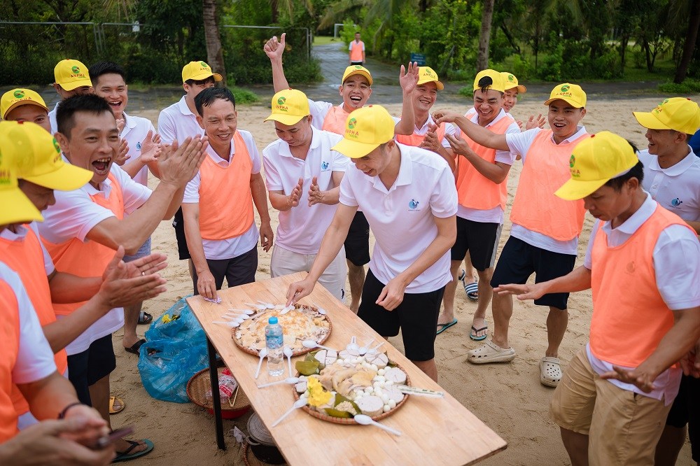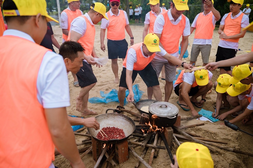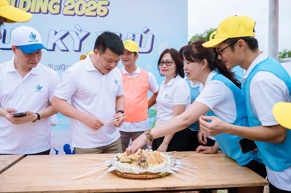 Chương trình teambuilding 2025 của Cảng Đình Vũ có nhiều điểm mới khi được xây dựng theo chủ đề “Cuộc đua kỳ thú”, các thành viên không chỉ chơi những trò chơi đồng đội đơn thuần mà phải vượt qua các thử thách để tìm được đạo cụ, nguyên liệu nấu xôi đỗ xanh và giã muối vừng lạc, trang trí bàn tiệc vô cùng đặc sắc. Trước không gian rộng lớn và cảnh quan tuyệt đẹp tại bãi biển Tuần Châu, 3 đội thi Xanh-Cam-Đỏ đã có những pha căng não khi phải giải mật thư (mã Morse), rượt đuổi nghẹt thở để giành nhau những đạo cụ vô cùng gần gũi như nắp nồi, chảo, chày, cối, đũa cả nhưng lại rất cần thiết để có thể chế biến thành công món ăn tưởng như đơn giản là xôi đỗ xanh. Một số thành viên đã trổ tài vô cùng ấn tượng khi khá thành thạo nhóm lửa trên bếp củi và 3 viên gạch; vài thành viên khác lại thực sự điêu luyện khi chặt thịt gà đẹp mắt.