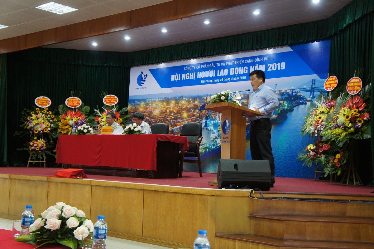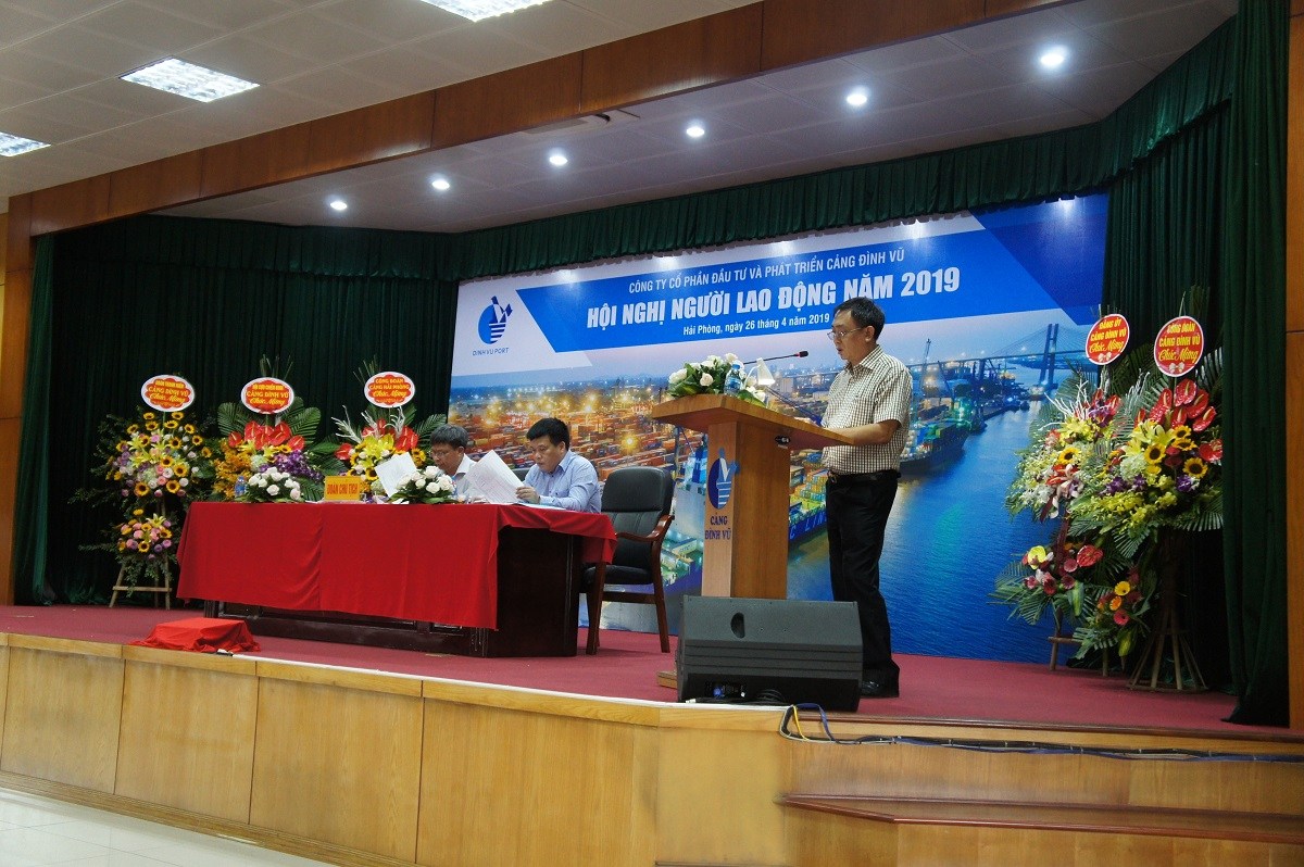 Chiều ngày 26 tháng 4 năm 2019, Công ty Cổ phần Đầu tư và Phát triển Cảng Đình Vũ đã tổ chức Hội nghị người lao động năm 2019 tại Hội trường tầng 5 Công ty, phường Đông Hải 2, quận Hải An, thành phố Hải Phòng. Tham dự Hội nghị có tổng số 125 đại biểu đại diện cho toàn thể CBCNV các đơn vị phòng, ban, tổ, đội trong Công ty.
